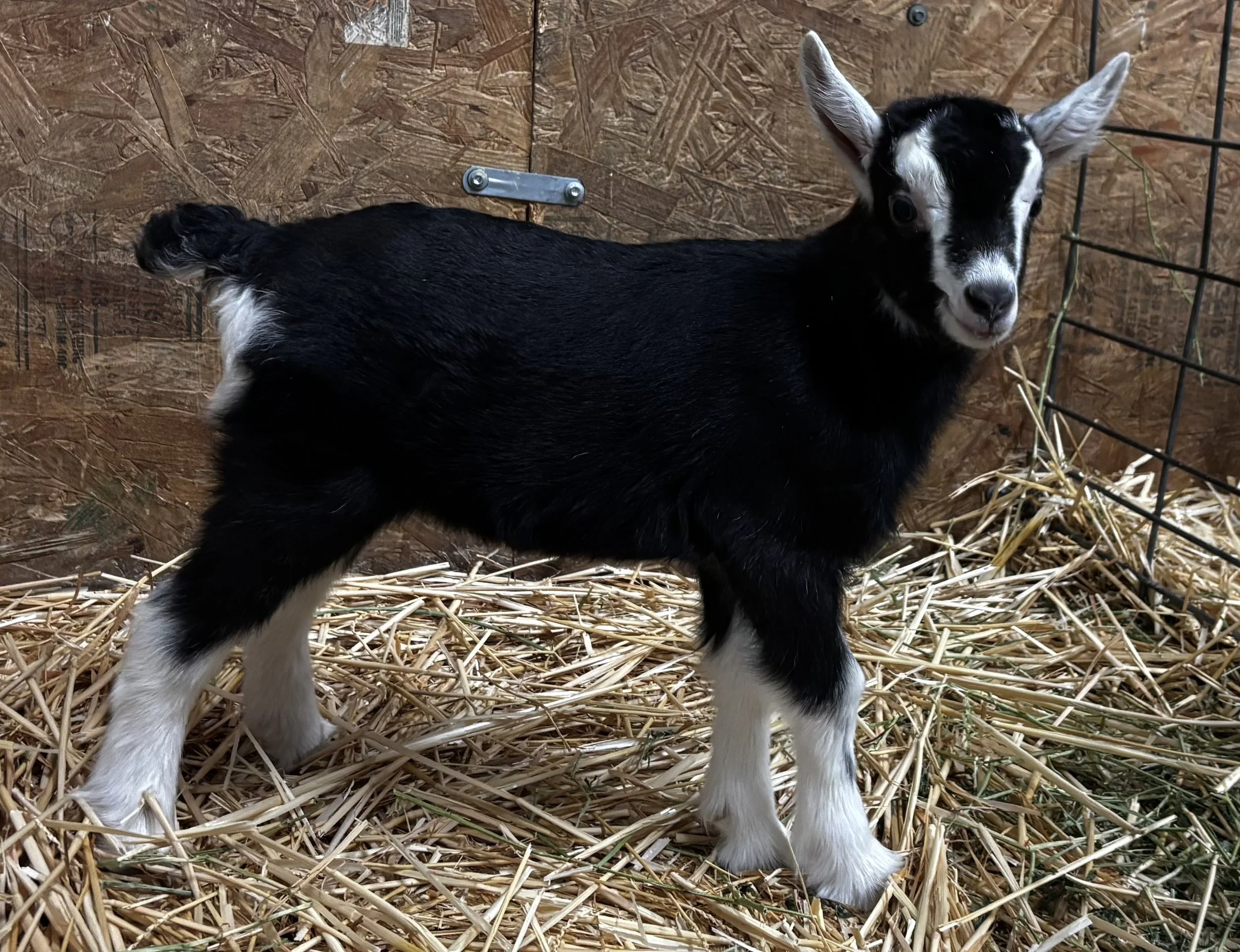 Buck kid born 2/19/26, thriving on the bottle and receiving plenty of daily socialization.